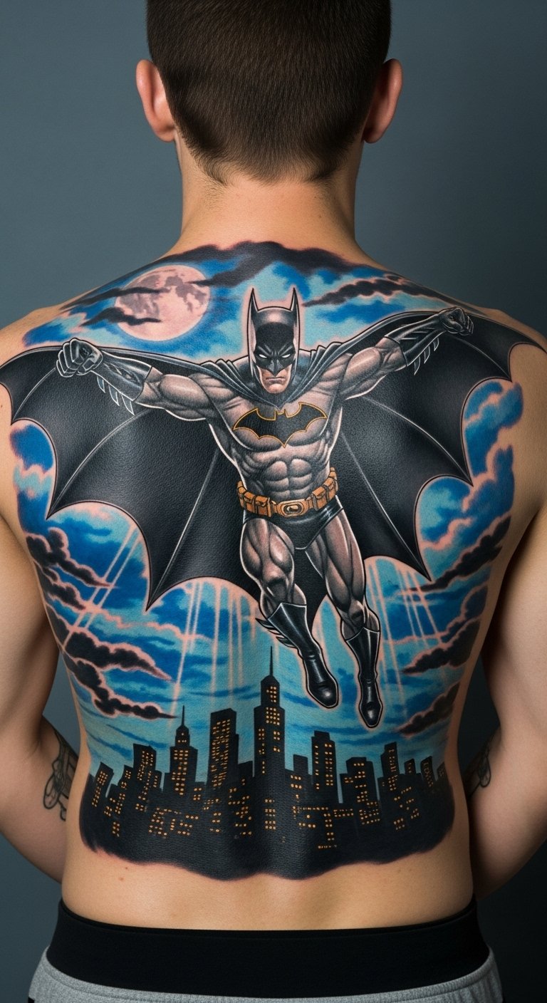 This tattoo embodies the spirit of bravery and justice, celebrating the iconic hero that Batman represents.