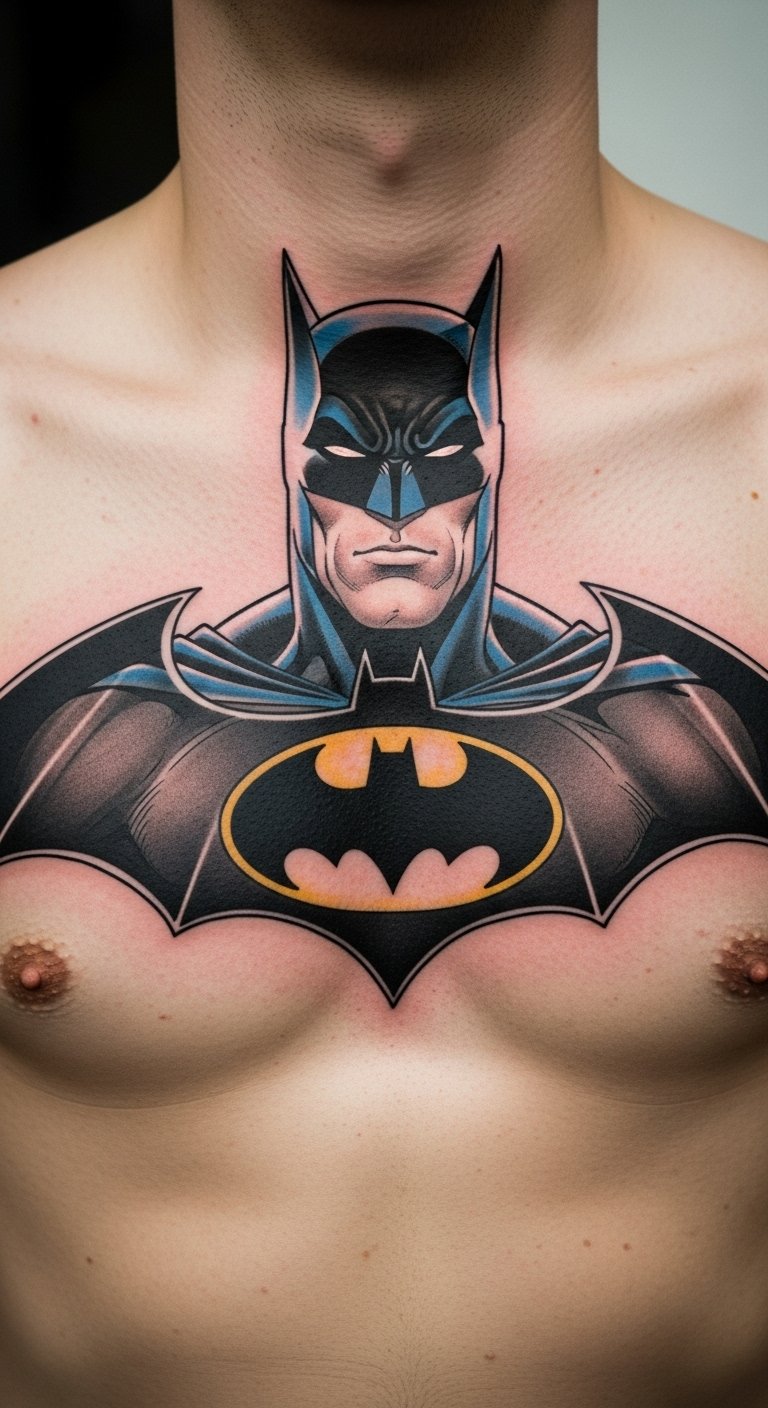 This tattoo symbolizes bravery and resilience, embodying the spirit of Batman as a protector of Gotham.