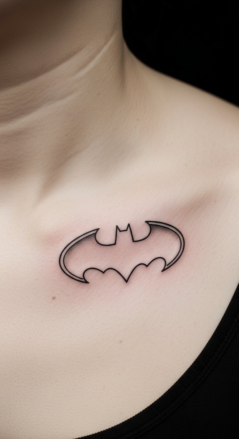 The collarbone is a perfect placement for a minimalist Batman tattoo, symbolizing strength and resilience while remaining elegant and subtle. This location allows for easy visibility, inviting conversation and admiration without overwhelming the observer.