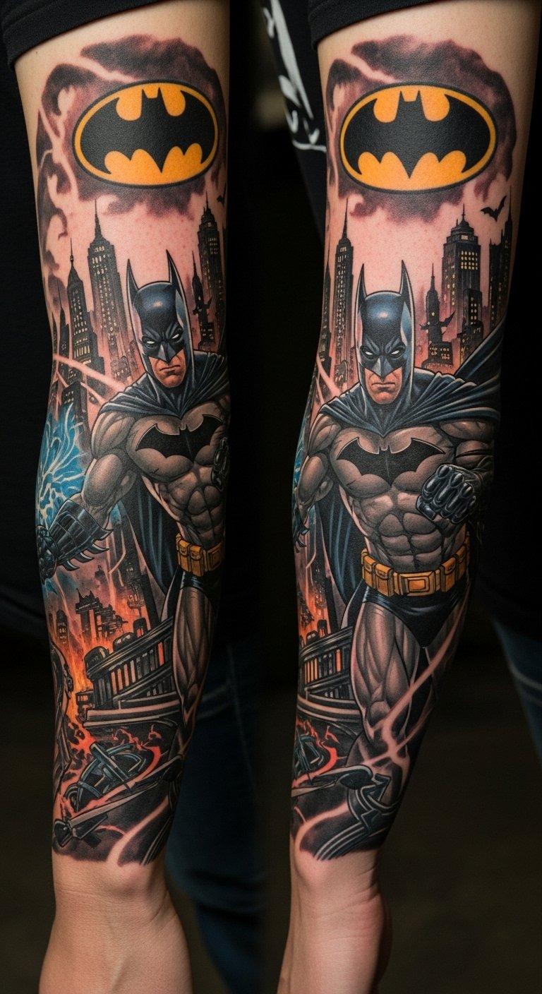 Full-Sleeve Batman Tattoos for Comprehensive Tribute