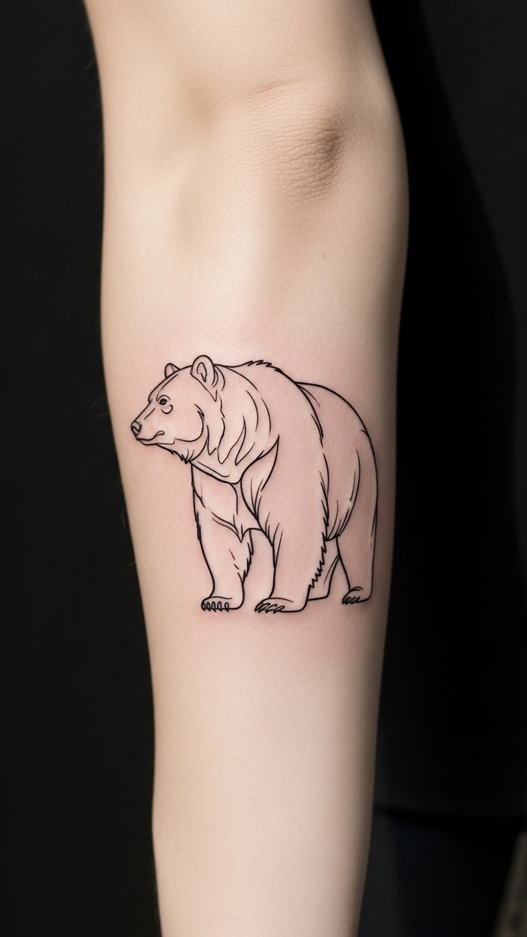 This bear tattoo, elegantly inked on the forearm, embodies strength and resilience, inviting onlookers to reflect on its powerful symbolism.