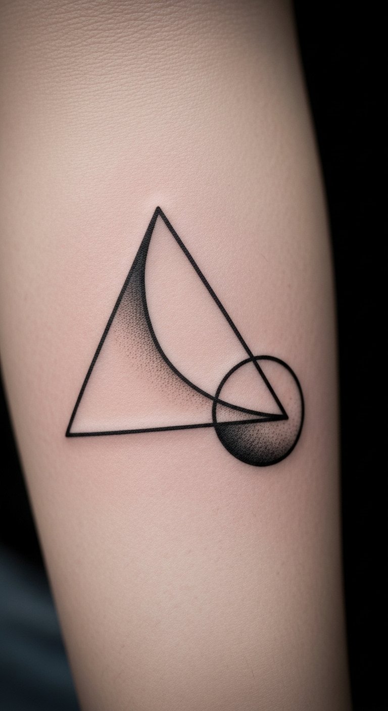 This tattoo design embraces the beauty of simplicity and precision, with the triangle symbolizing strength and stability, while the circle represents unity and wholeness.