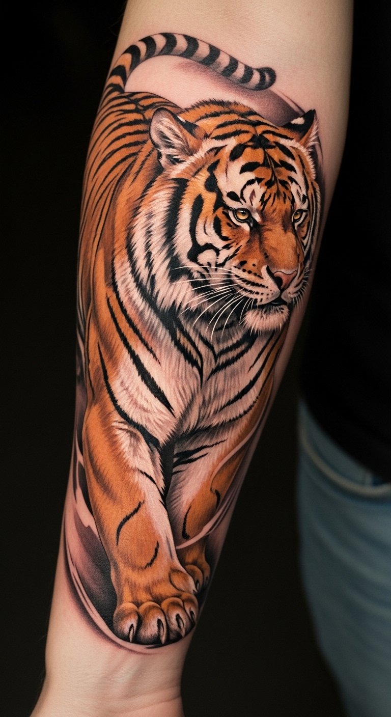 Positioned prominently on the outer forearm, it acts as a bold declaration of one’s fierce spirit. The lifelike details draw admiration and respect from onlookers, making it not just an artwork but a symbol of personal identity and resilience.