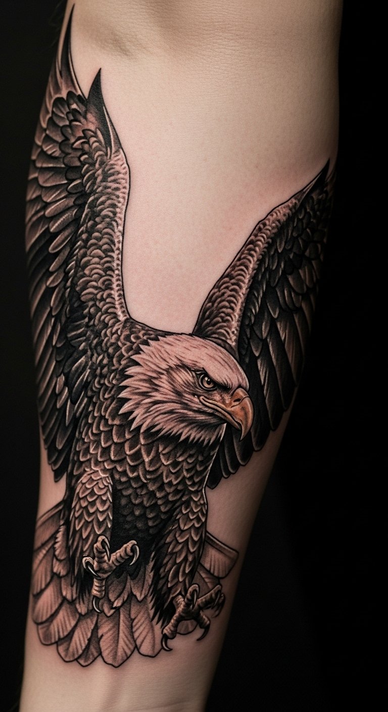 This tattoo embodies strength and freedom, symbolizing courage and independence through the majestic eagle.