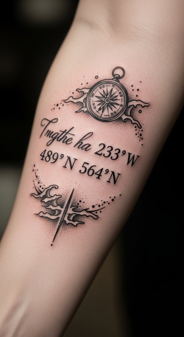 This tattoo design embodies the spirit of exploration and personal journey. Positioned on the forearm, it serves as a constant reminder of cherished memories tied to specific places.