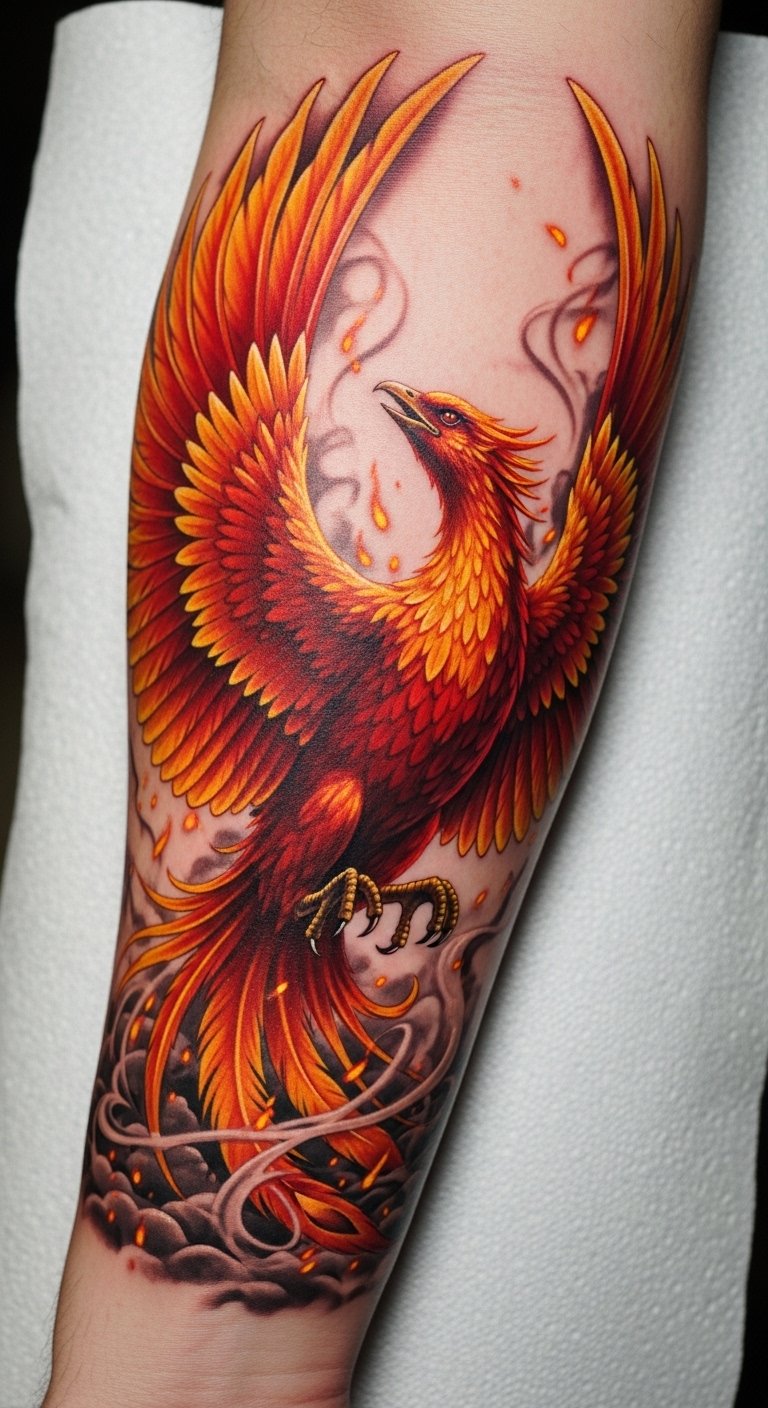 This tattoo symbolizes rebirth and renewal, embodying the strength and resilience inherent in the mythical phoenix.