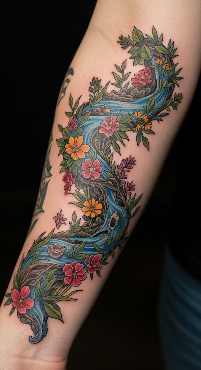 This tattoo embodies the essence of interconnected ecosystems, with each element symbolizing harmony and freedom.