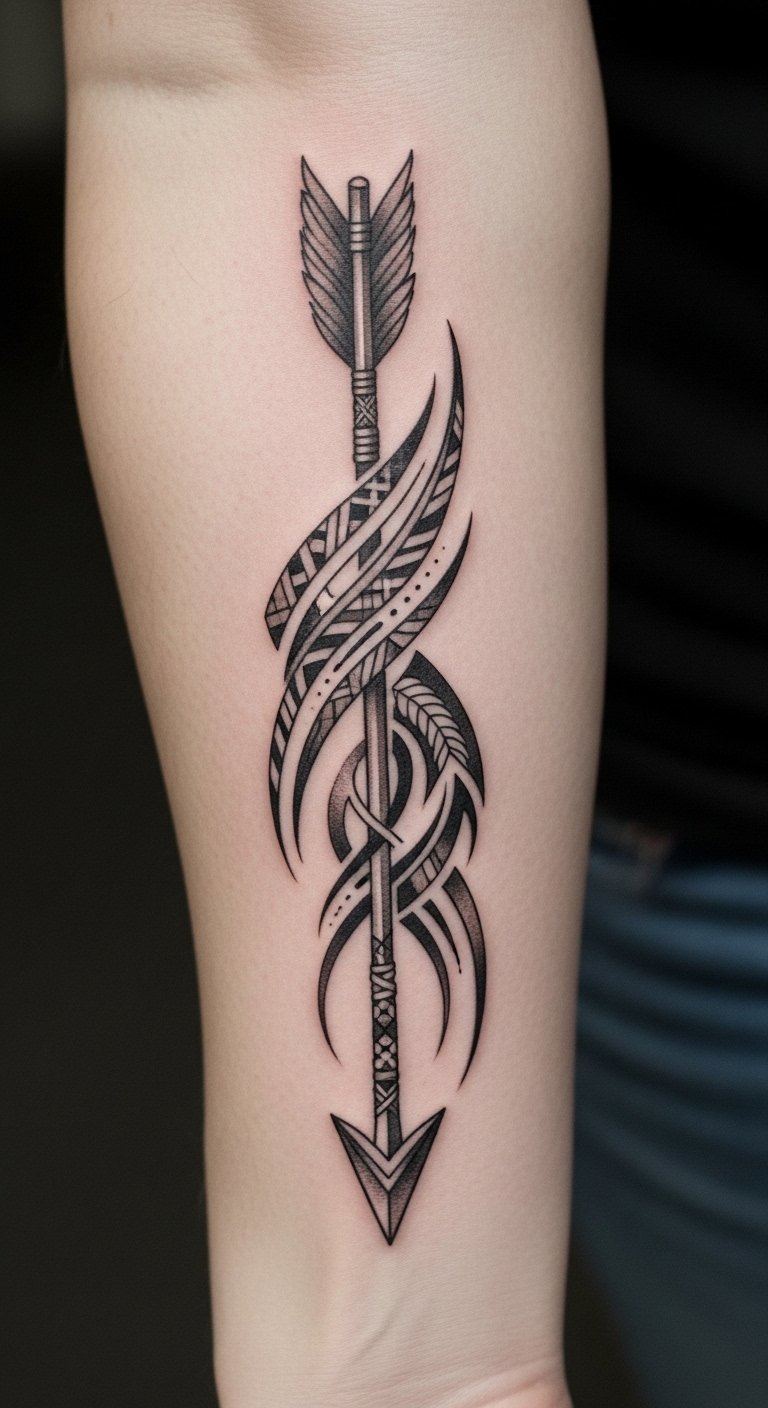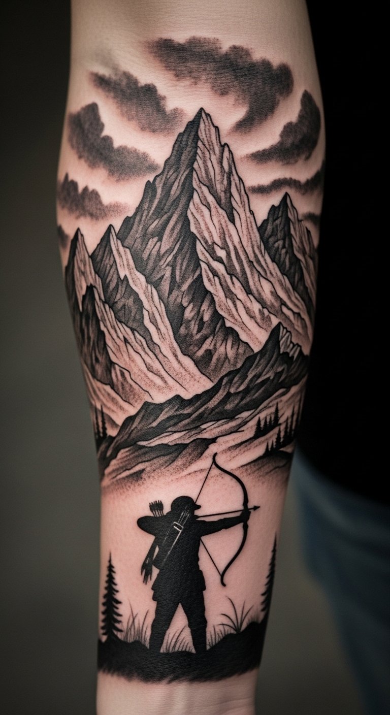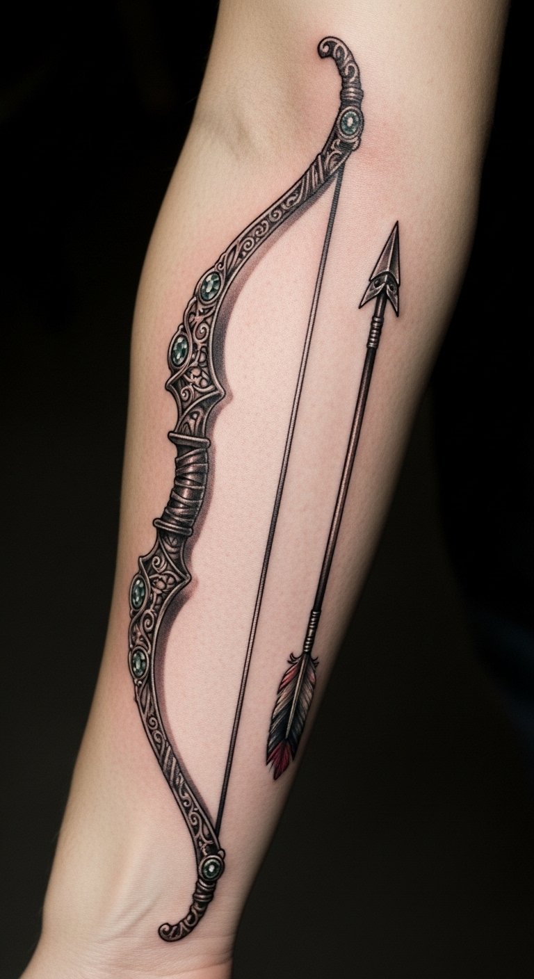 This tattoo design embodies the essence of archery, symbolizing strength, precision, and the spirit of adventure.