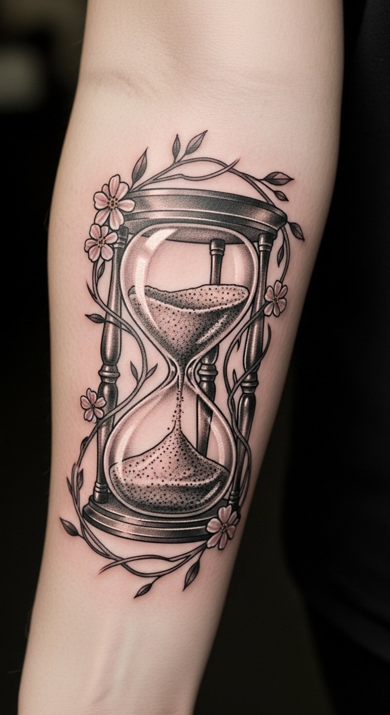 This tattoo design serves as a powerful reminder of the relentless flow of time and the importance of cherishing each moment.