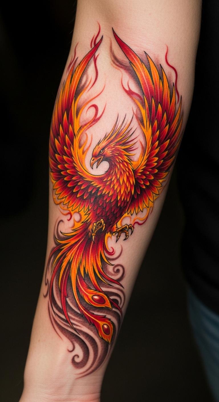 This tattoo symbolizes resilience and transformation, embodying the journey of overcoming adversity.