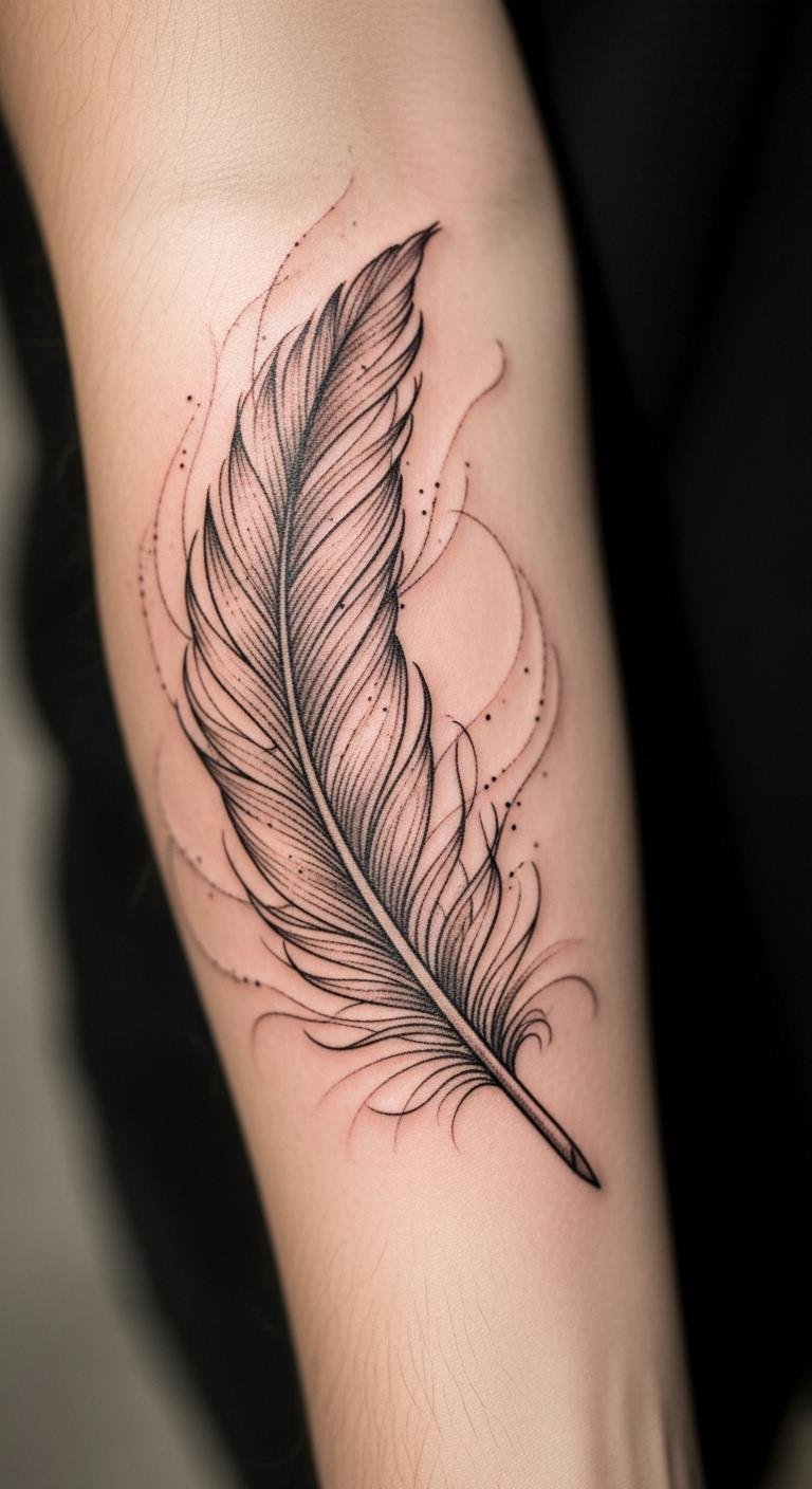 Each intricate detail of the feather whispers of hope and freedom, making it a powerful tribute to personal growth and the triumph over past struggles.