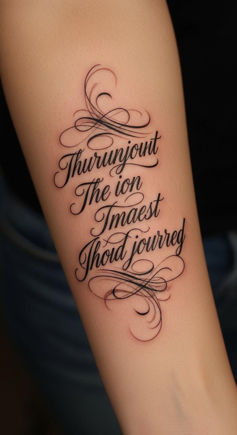 Every glance at the inked quote acts as a personal reminder of resilience, reinforcing the wearer’s spirit in the face of life’s challenges.
