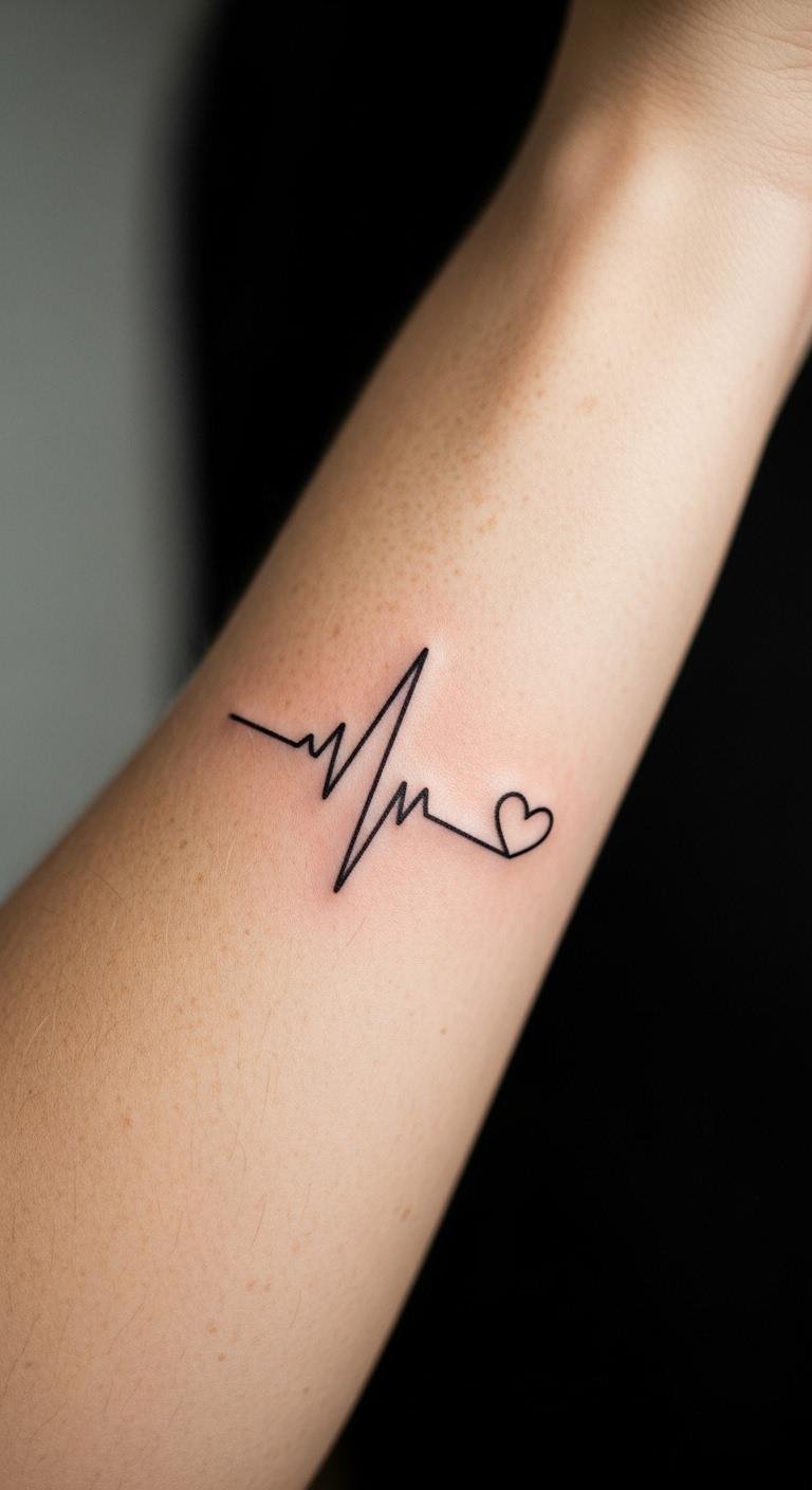 Placed on the inner forearm, it serves as a reminder of life’s rhythm, allowing the wearer to reflect on their journey and the strength found in every heartbeat.