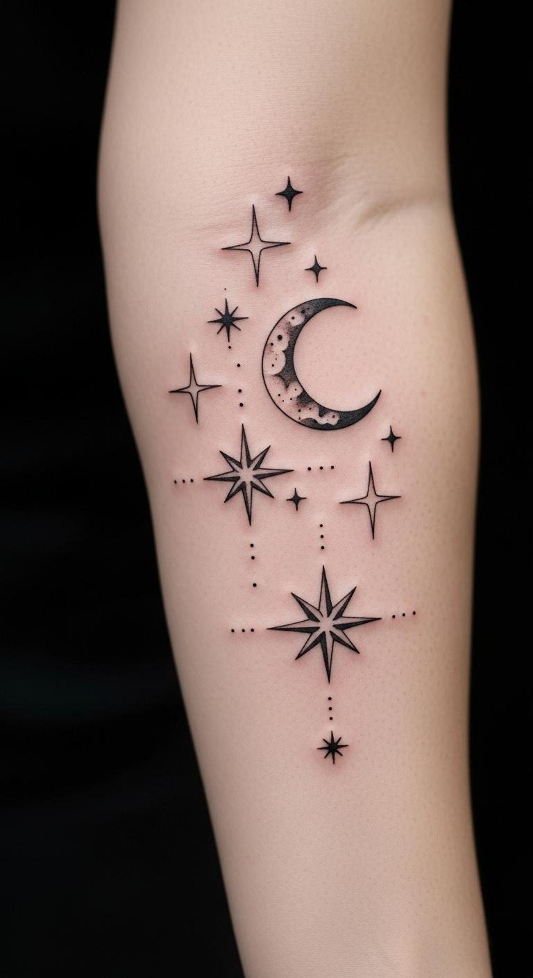The stars represent dreams and aspirations, while the crescent moon signifies the illumination of one’s path, encouraging the wearer to embrace their journey and shine brightly.