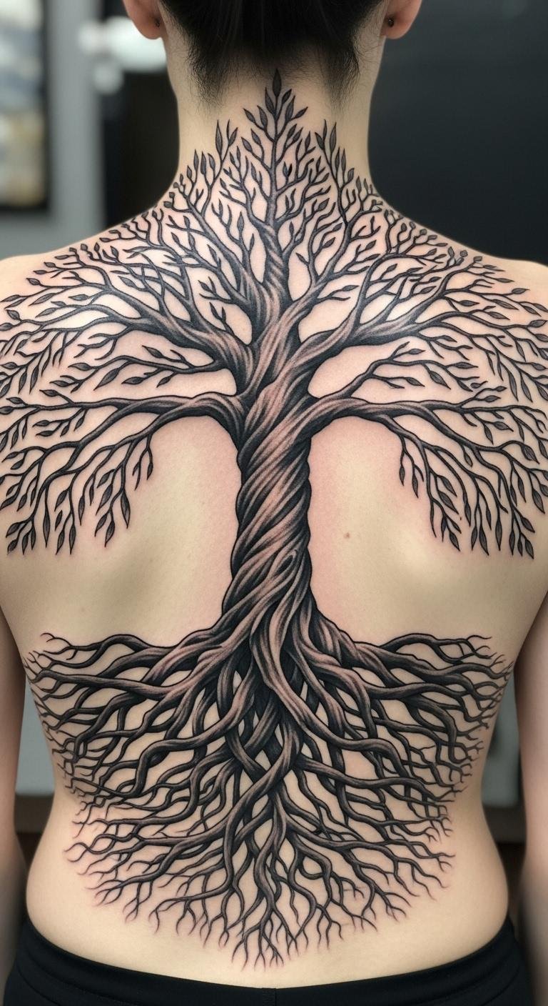 Placed on the upper back, it serves as a reminder of life’s trials and transformations, inviting introspection and connection to nature.