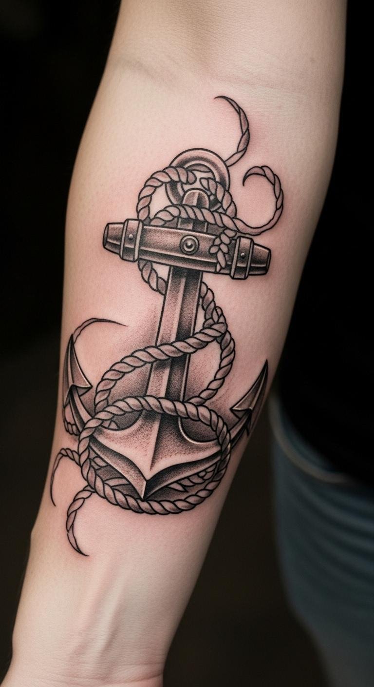 This anchor tattoo symbolizes stability amidst life’s struggles, serving as a constant reminder to remain grounded when faced with adversity.