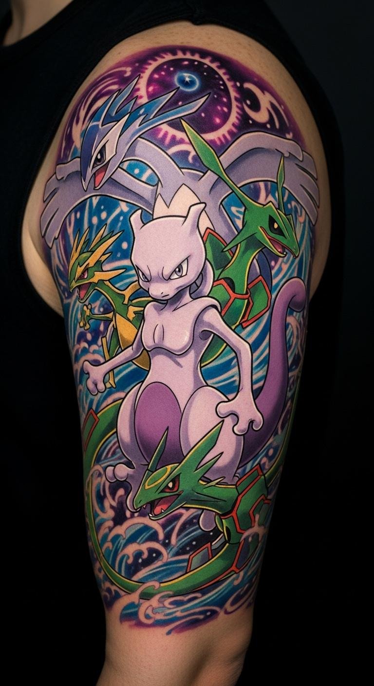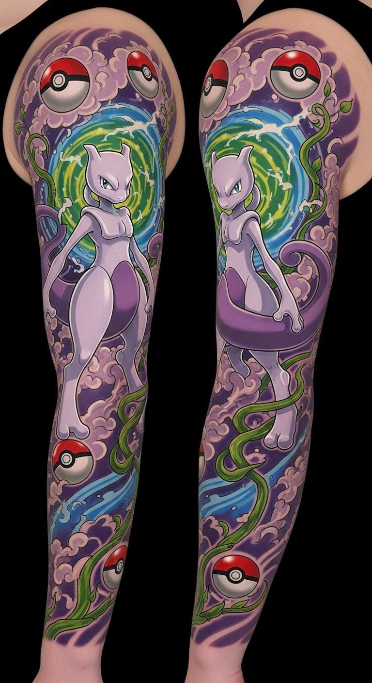 Sleeve Tattoos: Mewtwo and Pokémon Lore Combined