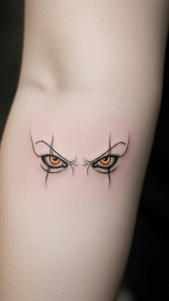 The minimalist Pennywise eyes tattoo serves as a powerful reminder of confronting one’s fears.