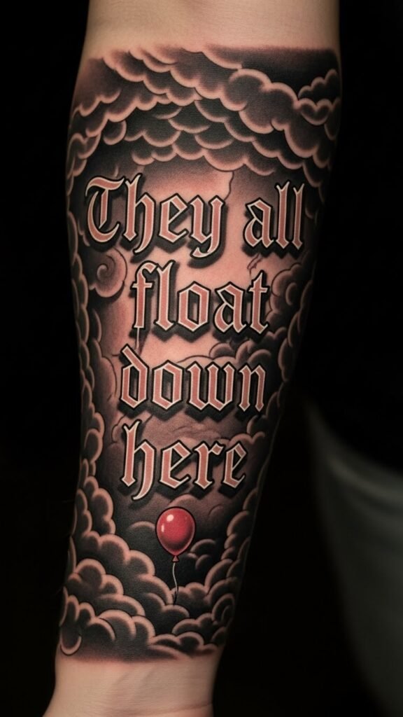 “They All Float Down Here” Phrase Tattoos