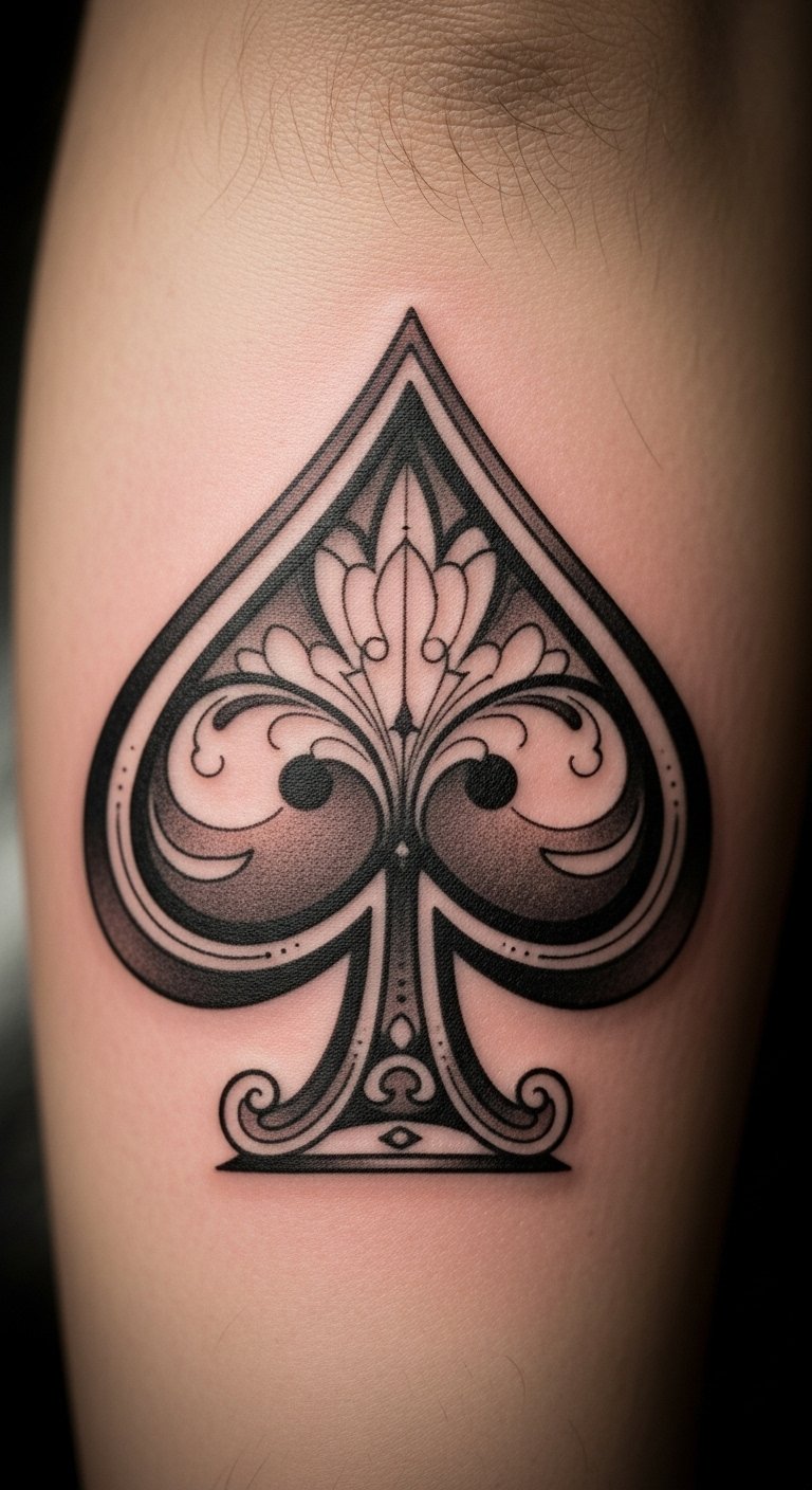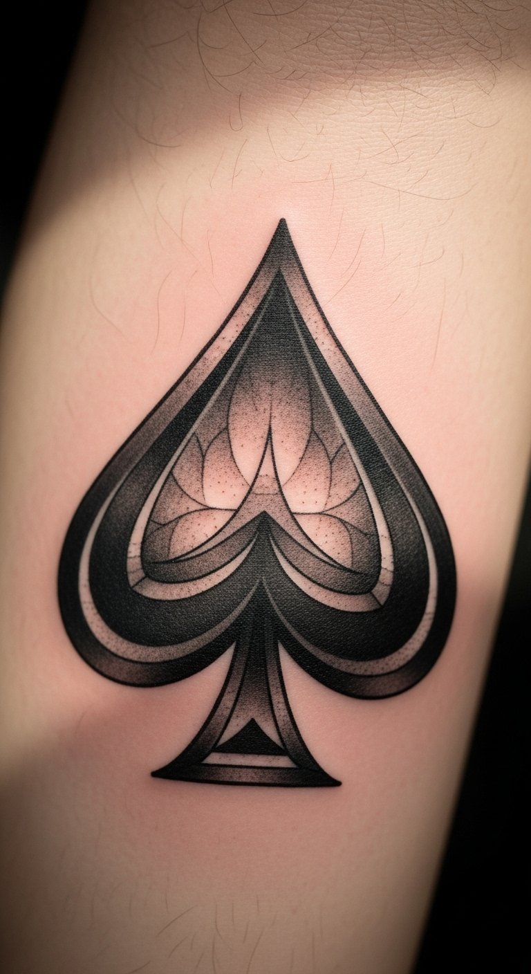 Embodying the essence of good fortune, the spade tattoo, particularly the ace card, carries a magnetic allure that many find irresistible.