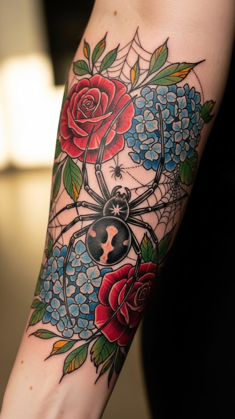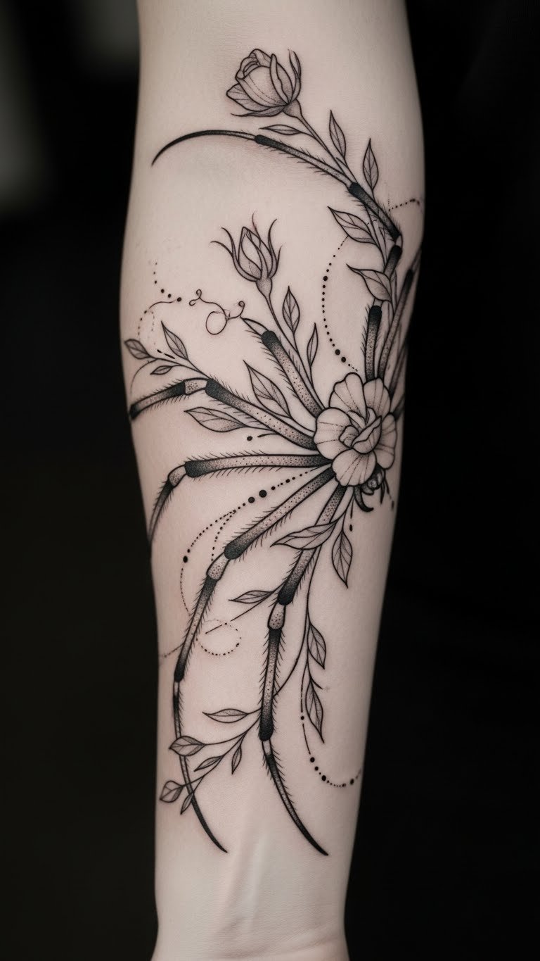 Floral Spider Tattoos: Nature’s Beauty Intertwined