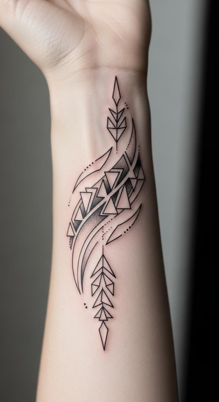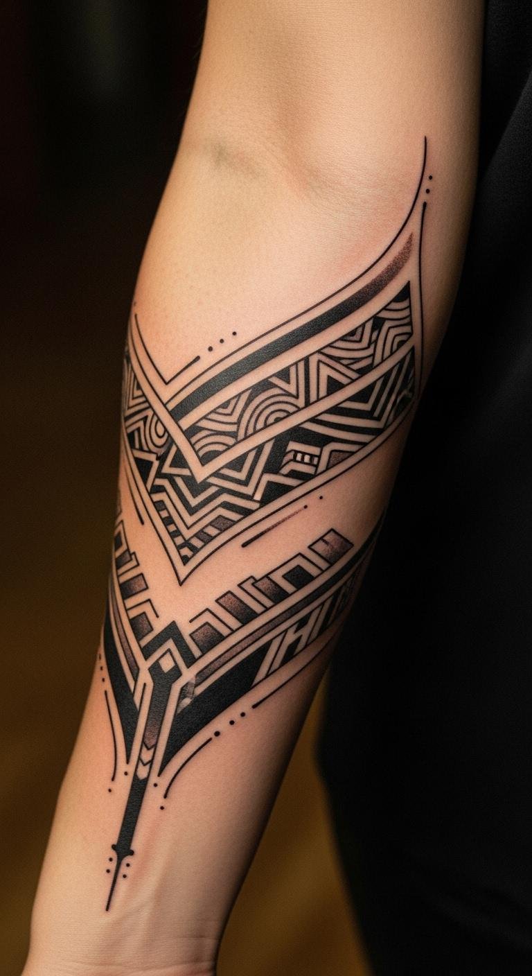 This geometric tattoo design symbolizes strength and individuality, reflecting a modern approach to personal expression.