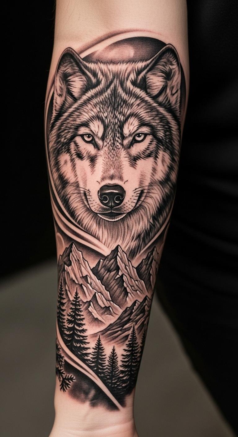This tattoo, featuring a fierce wolf, symbolizes strength, loyalty, and the wild spirit within.