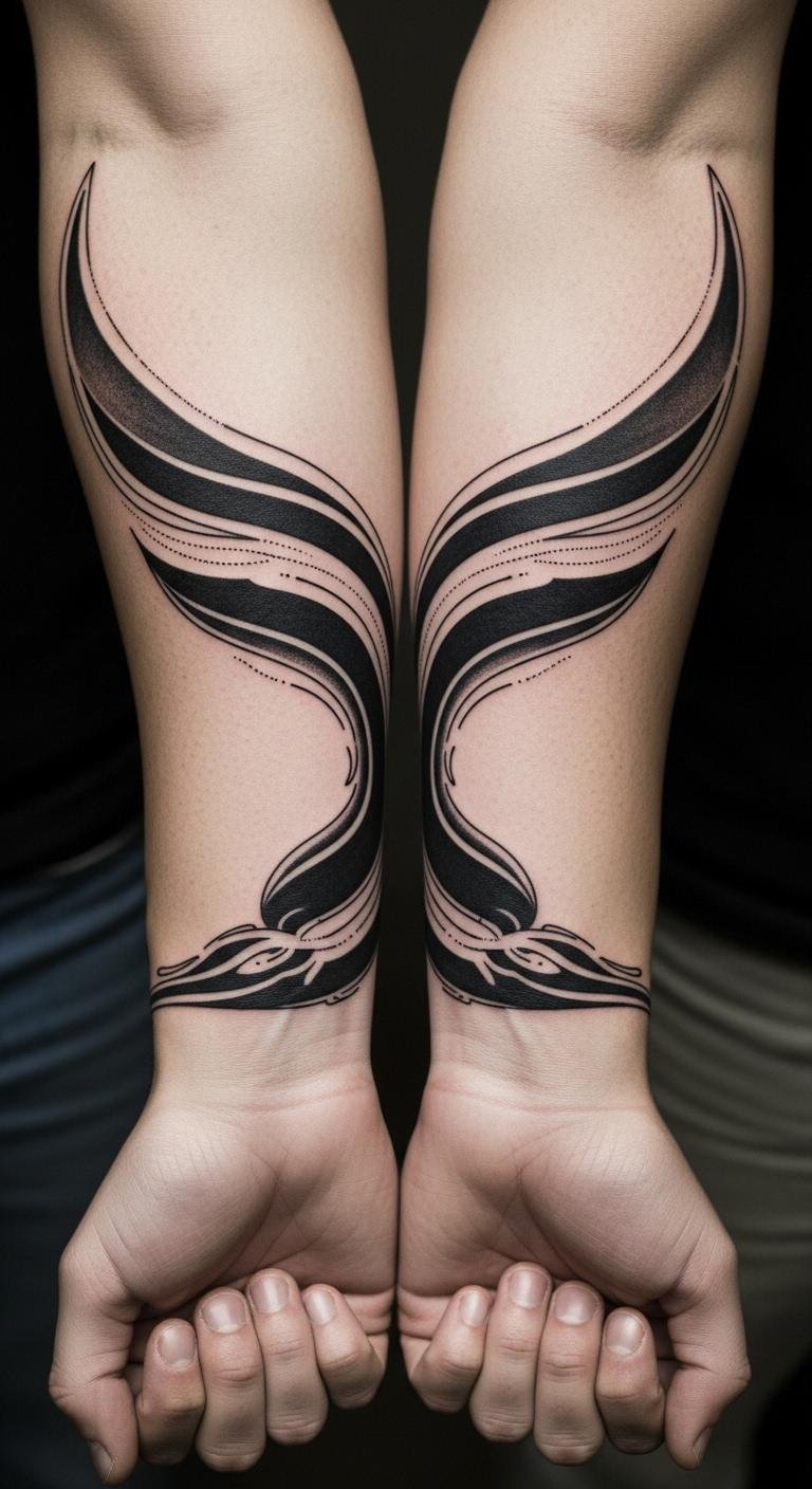 Positioned on the forearms, they serve as a canvas for artistic expression, enhancing both the tattoo and the natural features of the body.