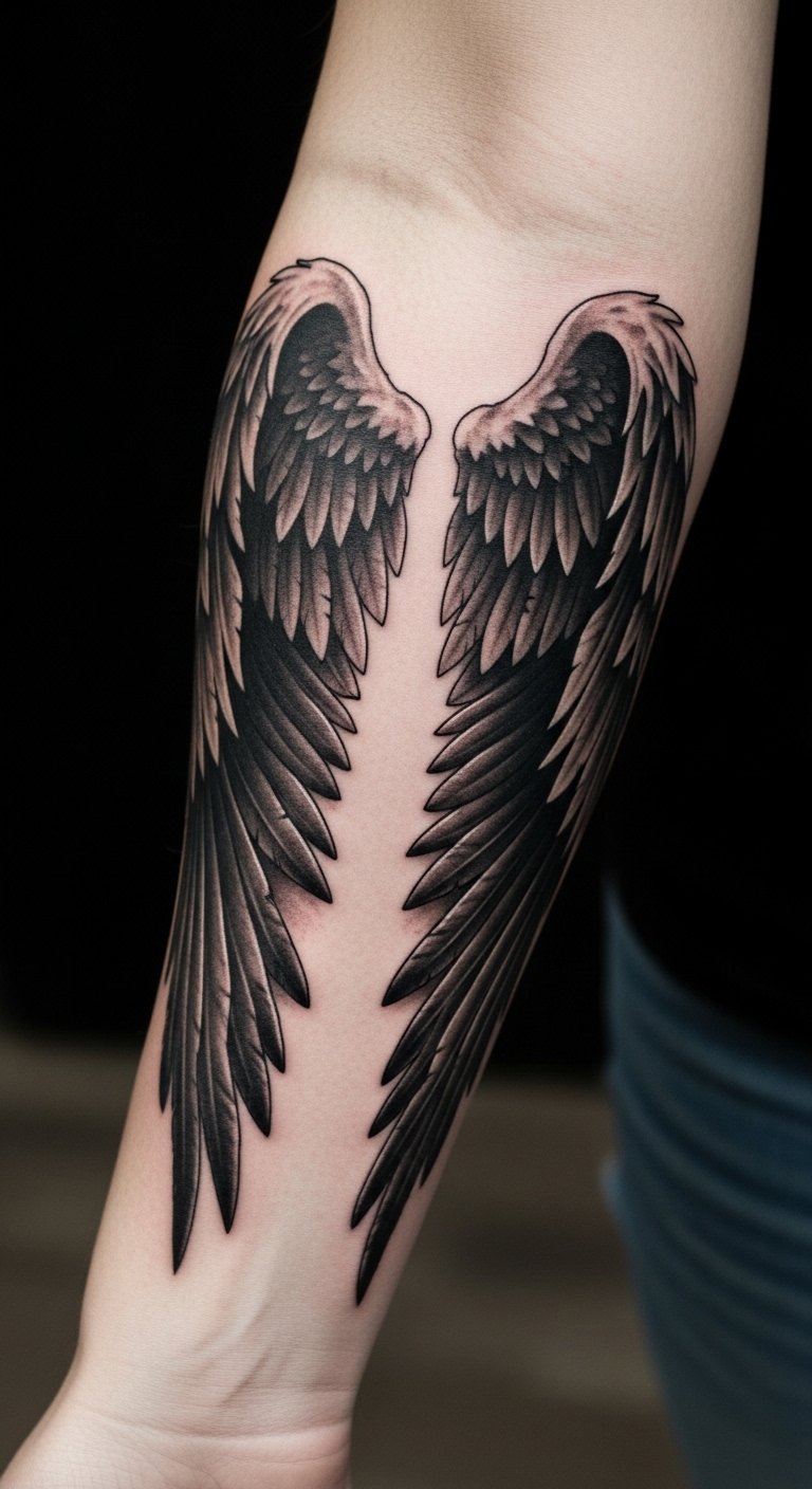 Positioned on the forearm, the tattoo serves as a personal statement, easily visible to the wearer and others, inviting conversations about identity and the allure of the shadows that shape our lives.