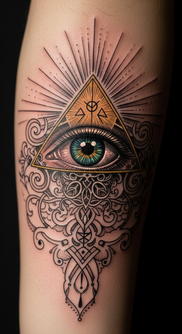 This tattoo embodies the essence of mystical eye symbolism, serving as a reminder to embrace one’s inner wisdom.