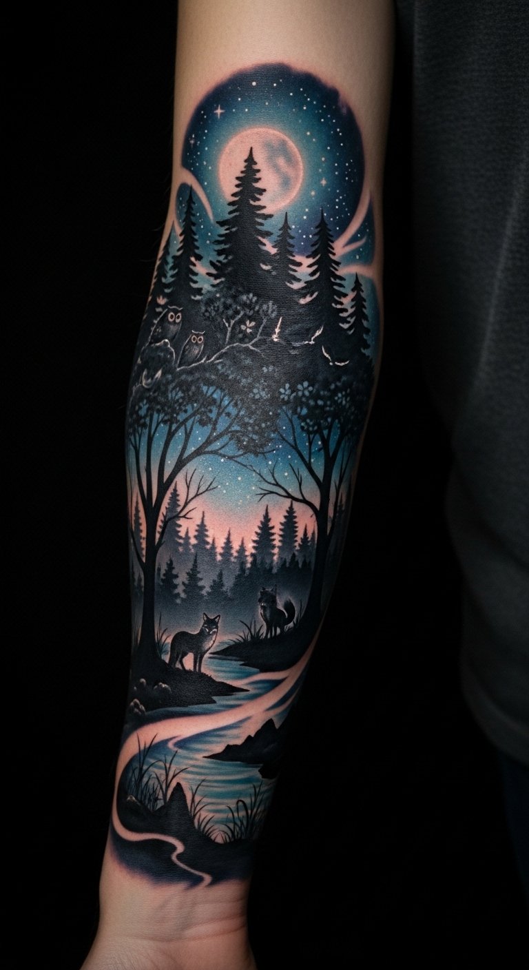 Placed on the forearm, it serves as a constant reminder of the beauty found in darkness, inviting onlookers to explore the deeper narratives hidden within this art form.