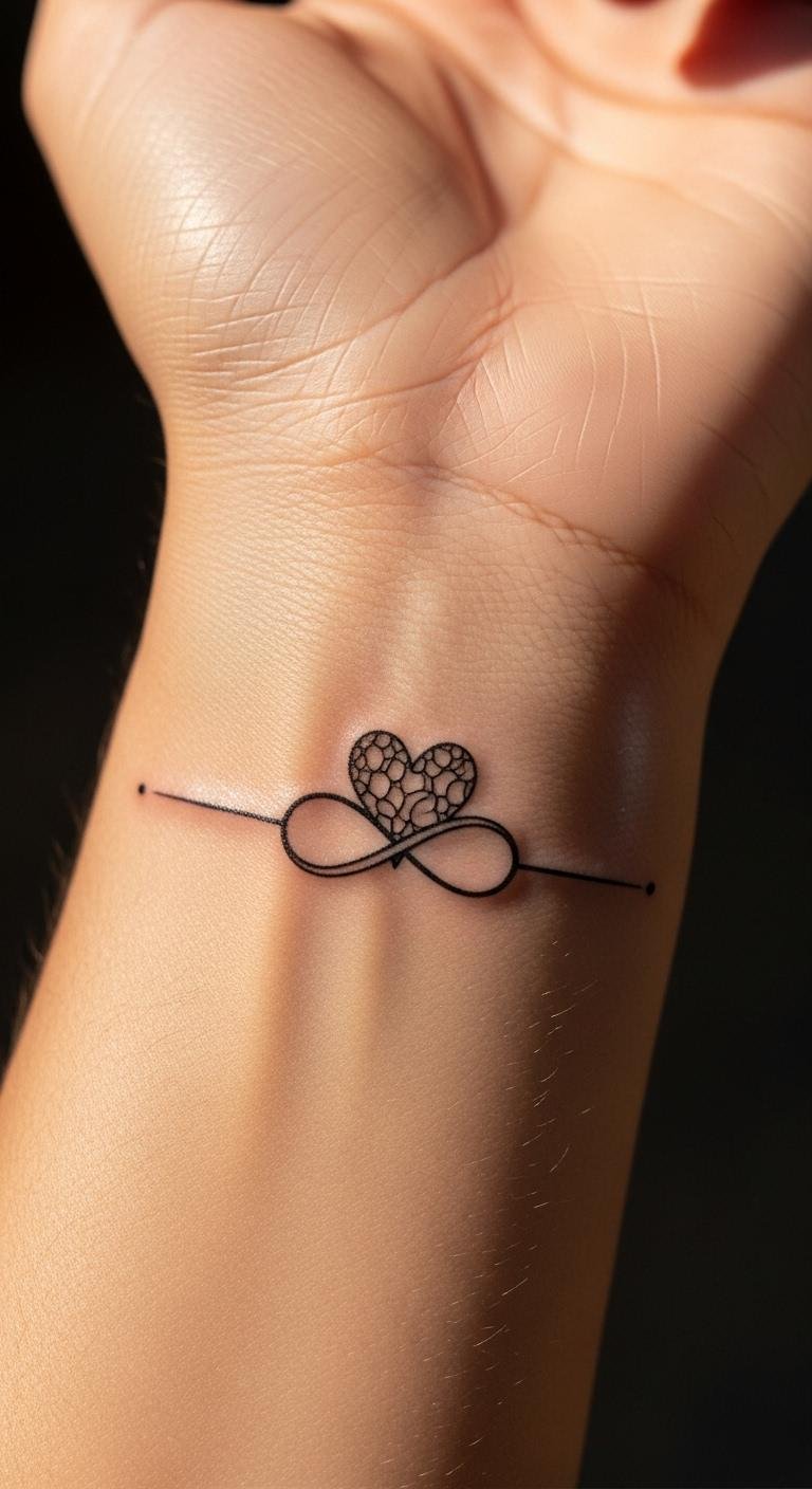 The heart and infinity symbol represent eternal self-love and the limitless journey of self-acceptance.