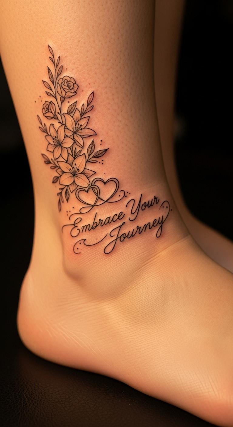 This ankle tattoo symbolizes freedom and movement, serving as a reminder of personal strength and self-love.