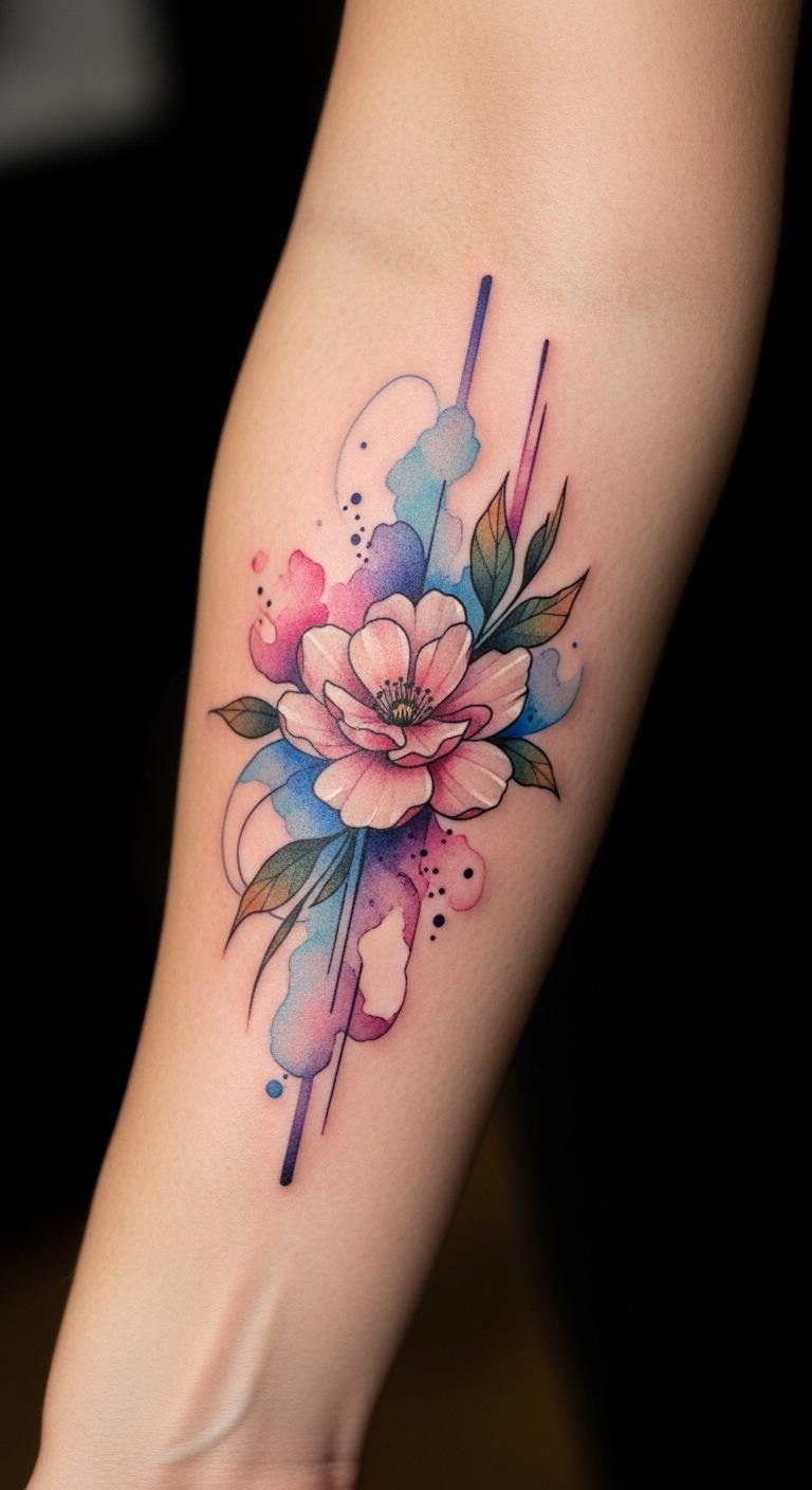 The flowing watercolor technique enhances the emotional depth, allowing the design to reflect a free spirit and inner beauty. Positioned on the forearm, it remains visible, serving as a daily reminder of resilience and the vibrant essence of life.