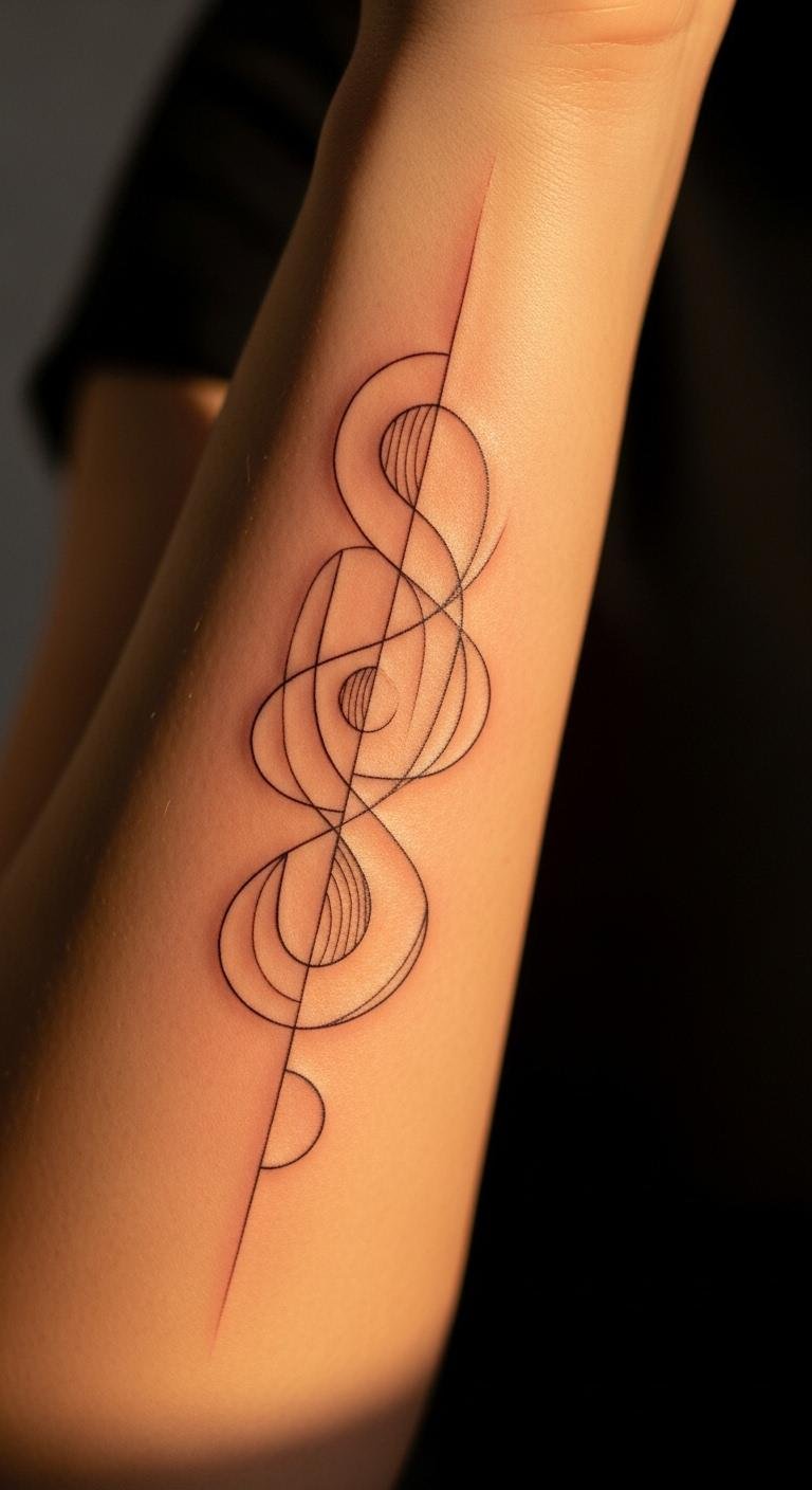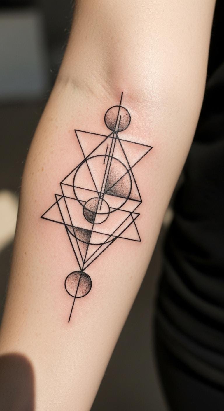 Positioned on the forearm, it serves as a daily reminder of inner strength and self-acceptance, visible to both the wearer and others. The interlocking shapes represent the interconnectedness of experiences, while the clean lines embody clarity of purpose, making it a powerful statement of freedom and personal growth.