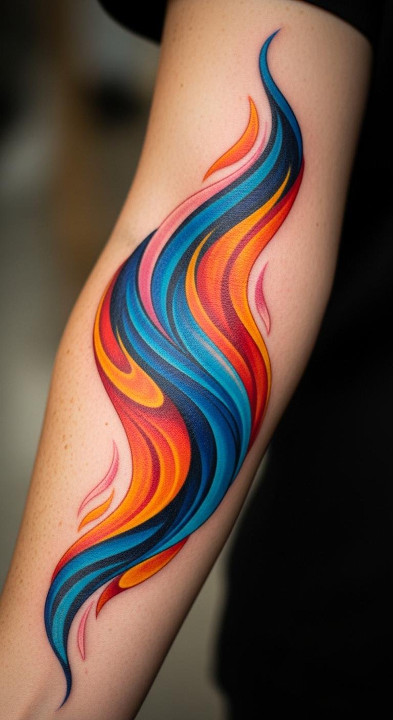 The swirling colors represent the complexity of feelings, celebrating the imperfection that makes us unique. Placed on the forearm, it serves as a constant reminder of the freedom to be oneself, with each glance at the artwork igniting creativity and self-acceptance.