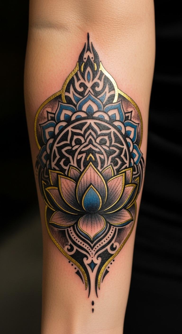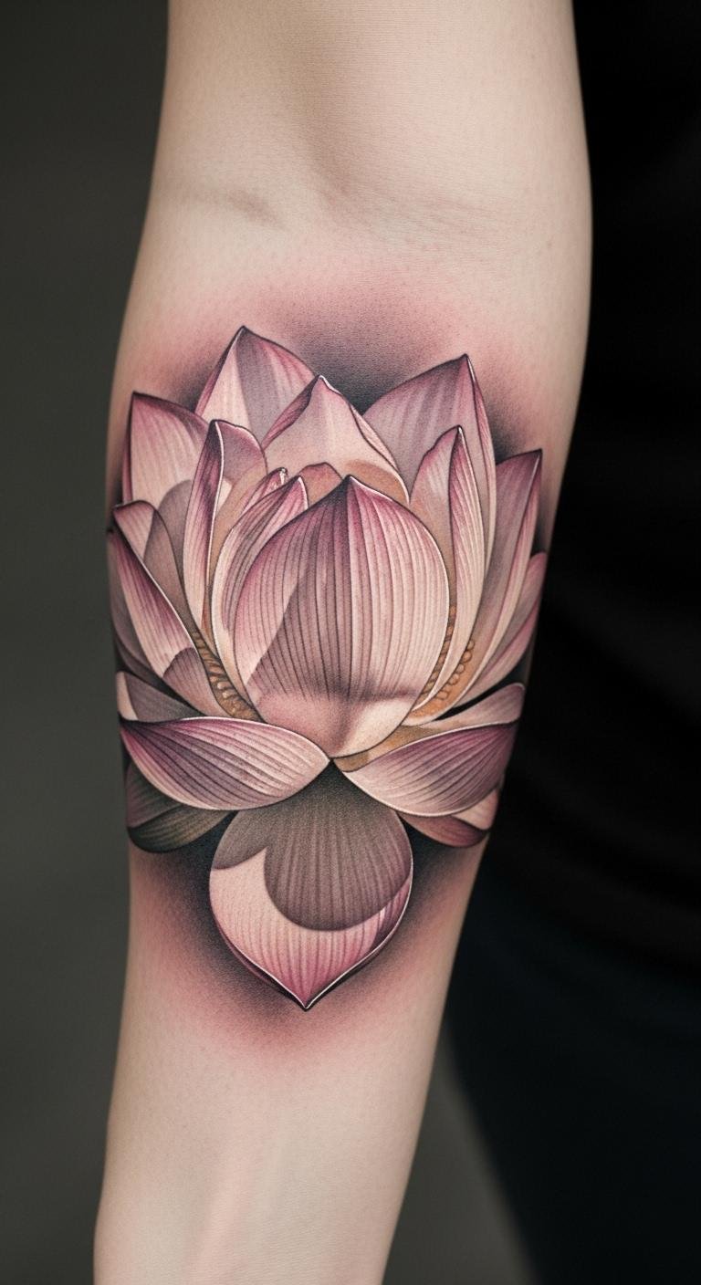 This tattoo, placed on the forearm, serves as a constant reminder of resilience and transformation. The lotus flower, rising above murky waters, symbolizes the journey of personal growth and self-love.