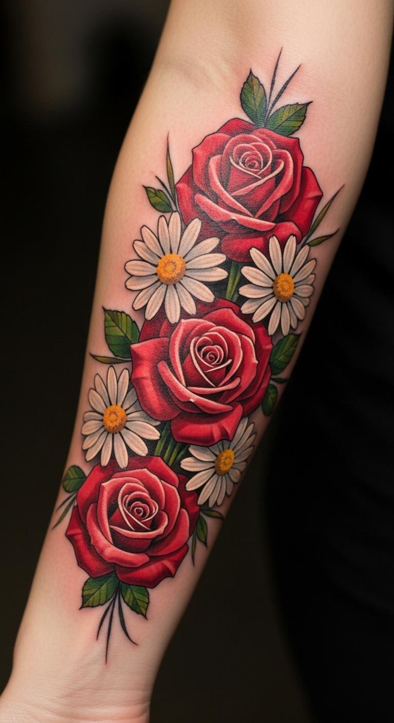 The placement on the forearm makes it easily visible, allowing the wearer to embrace their journey and share their story with the world. Each flower symbolizes a unique aspect of resilience, reminding the individual to cherish every moment and the beauty that comes with it.