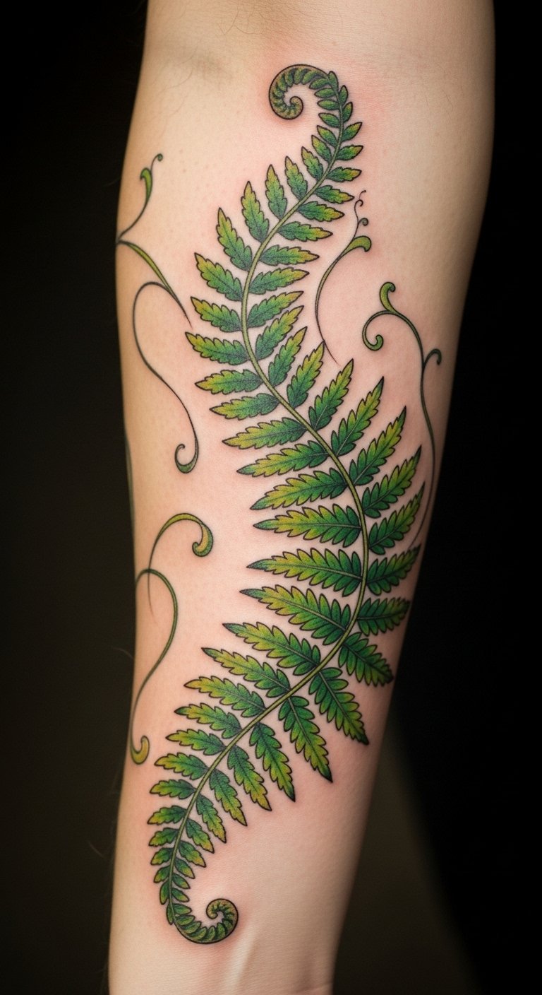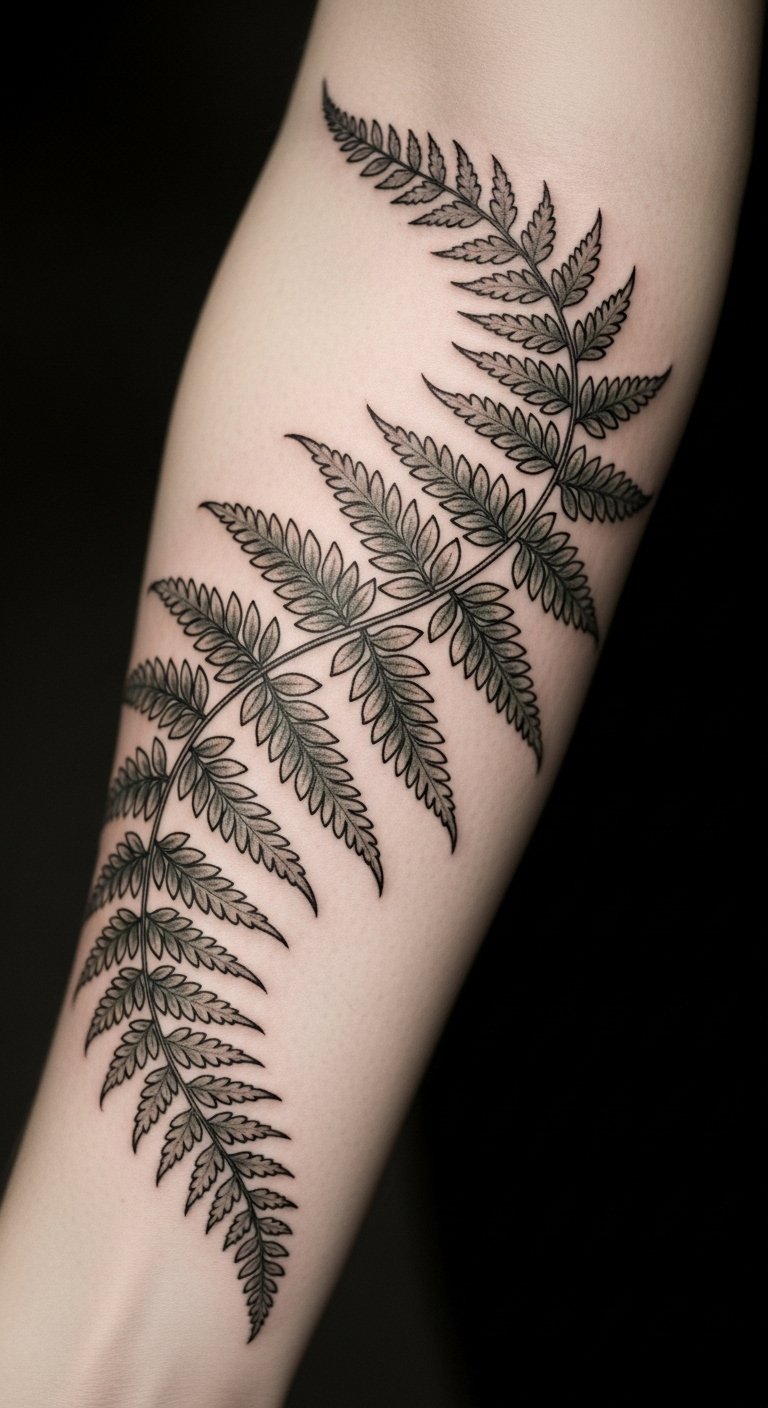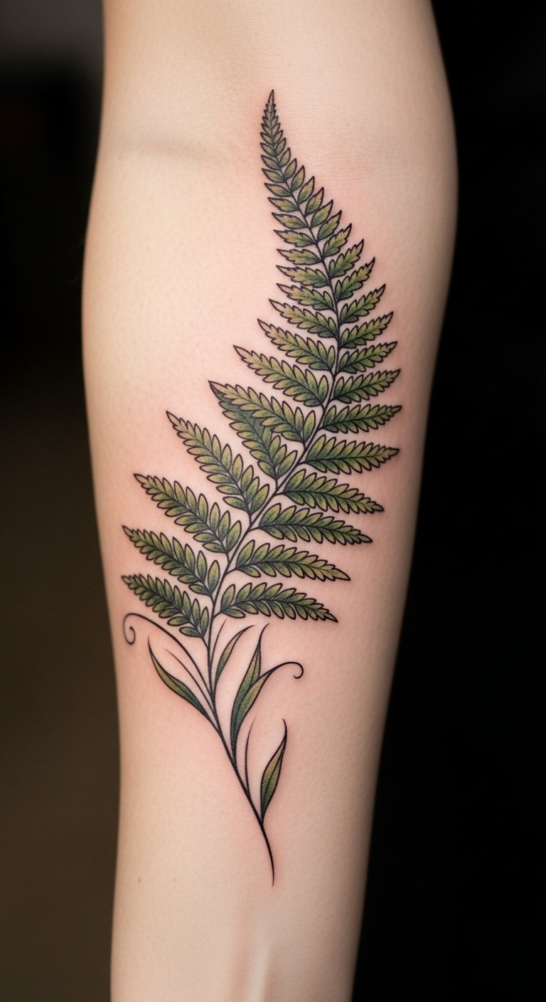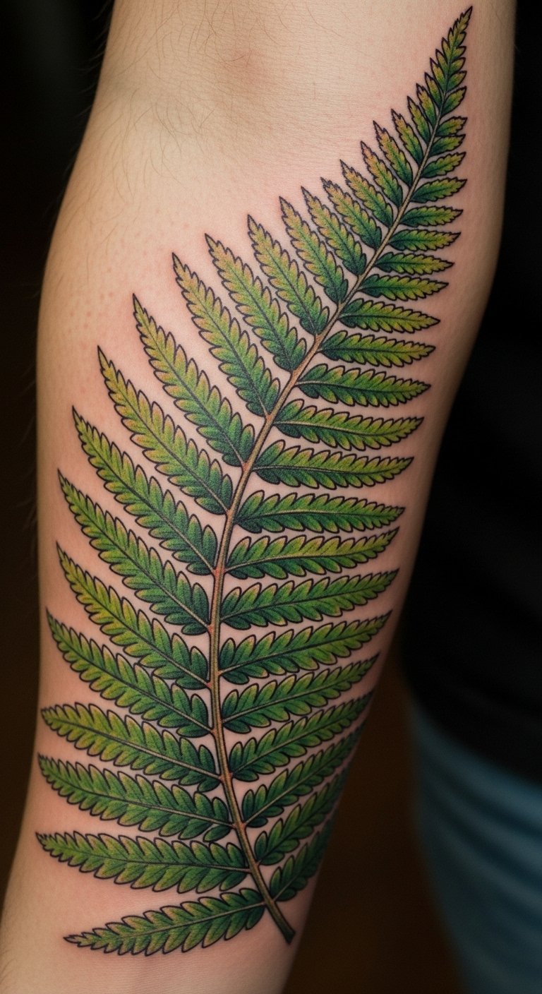 This fern tattoo symbolizes protection, resilience, and a deep connection to nature.