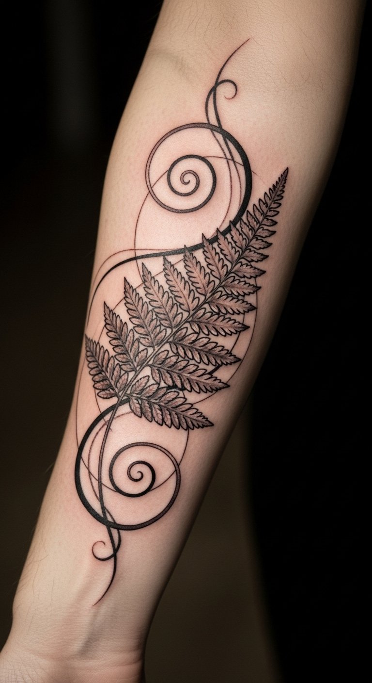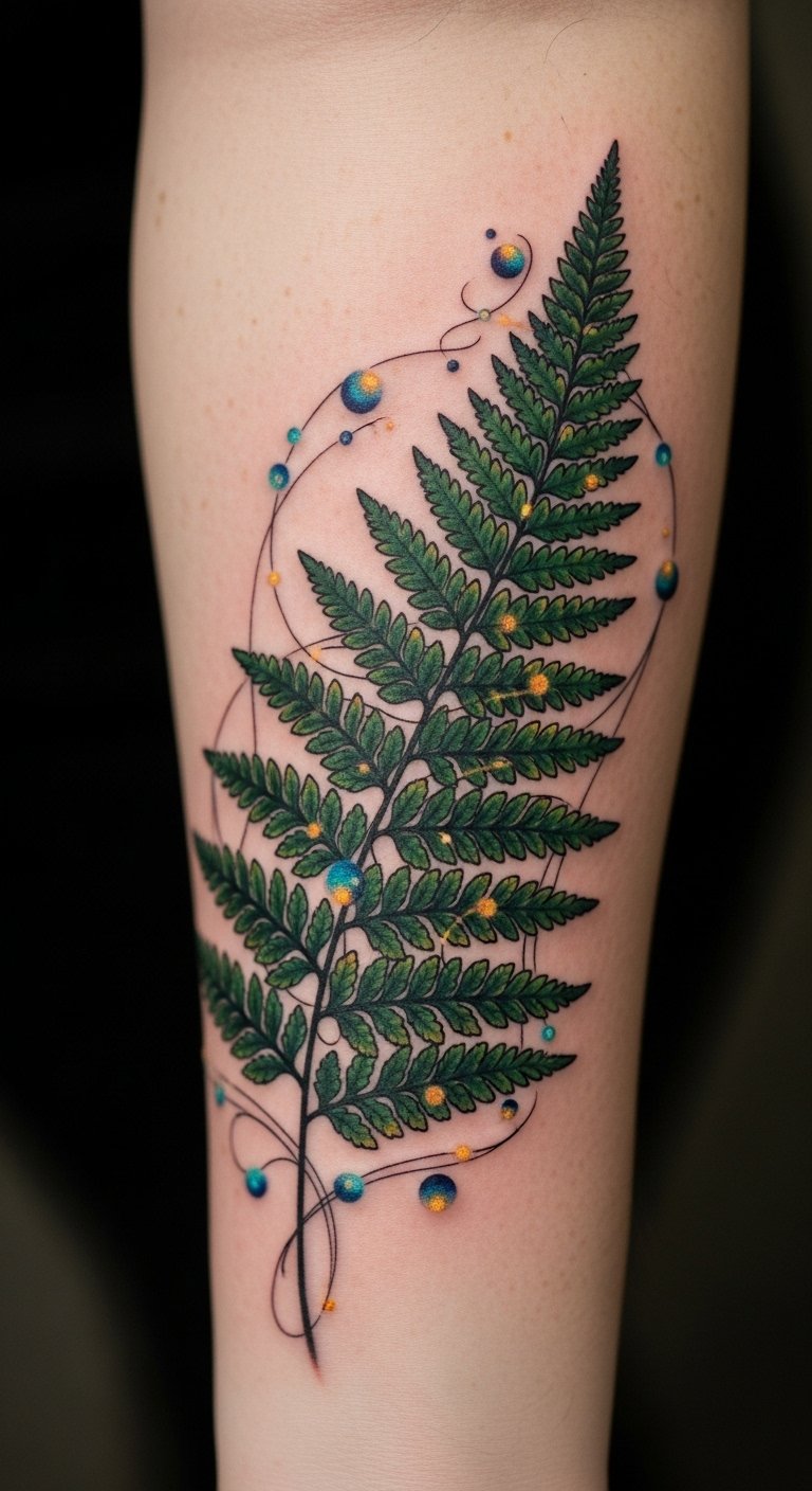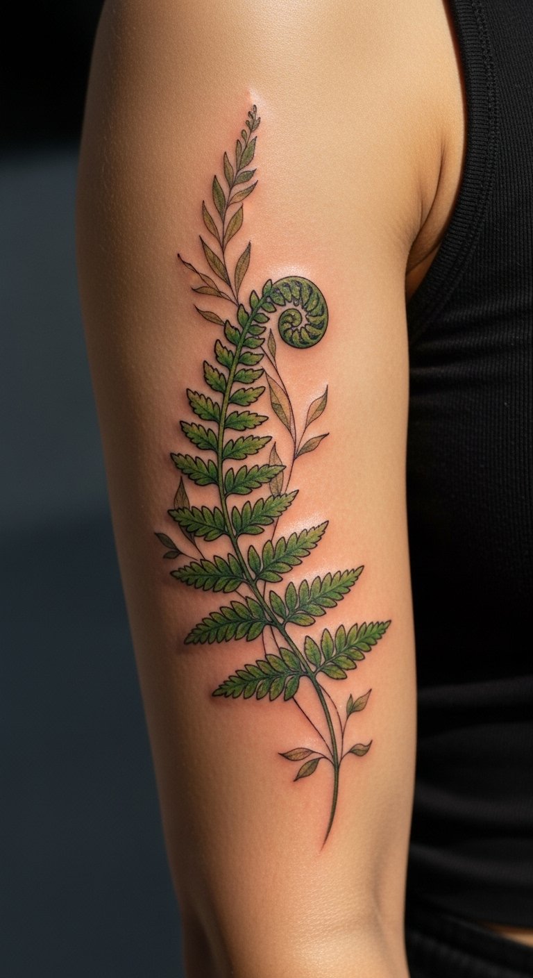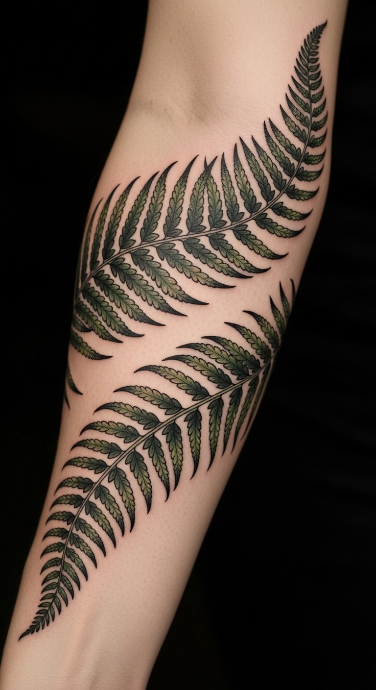 This fern tattoo symbolizes protection, resilience, and a deep connection to nature.