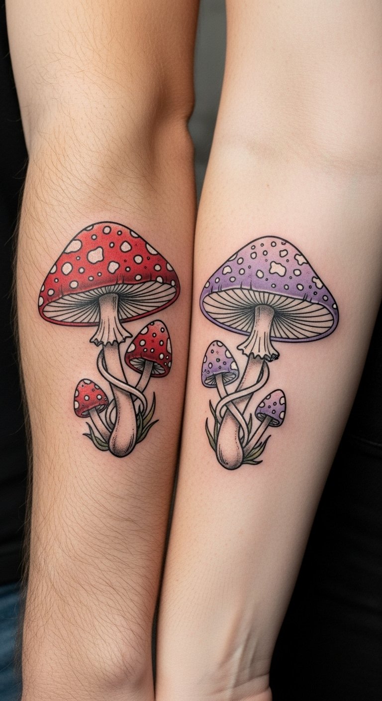 Couple Tattoos Featuring Mushrooms
