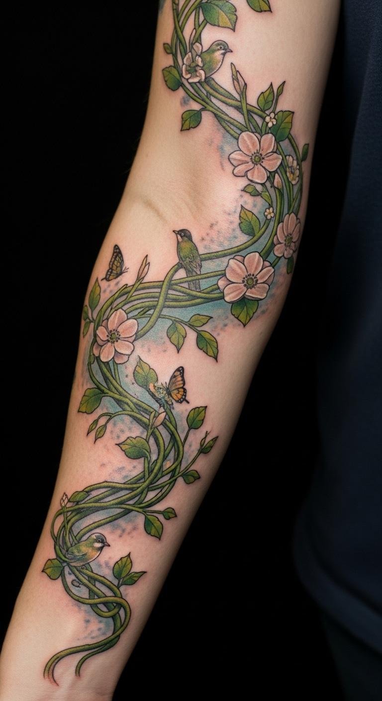 This tattoo symbolizes the cyclical nature of life and the beauty found in each season. Placed on the forearm, it serves as a visible reminder of personal growth and transformation, celebrating the journey through nature’s dance.