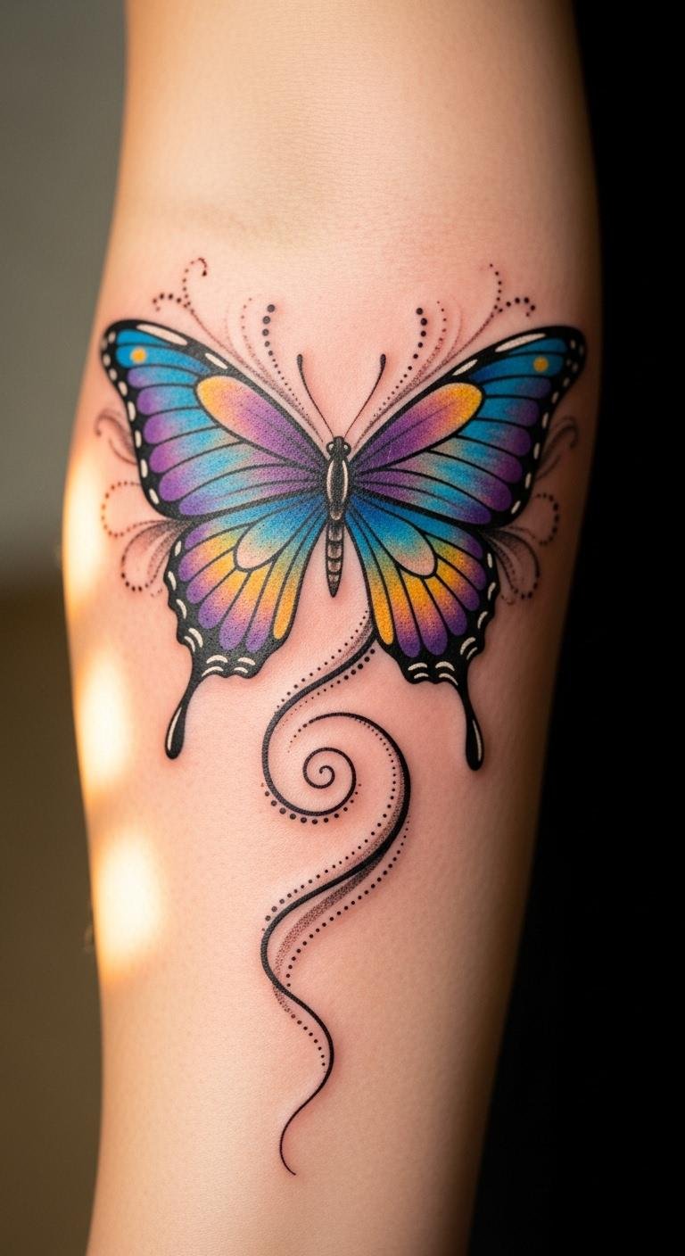 The butterfly signifies metamorphosis and the beauty of change, while the spiral embodies the continuous journey of self-discovery and evolution.