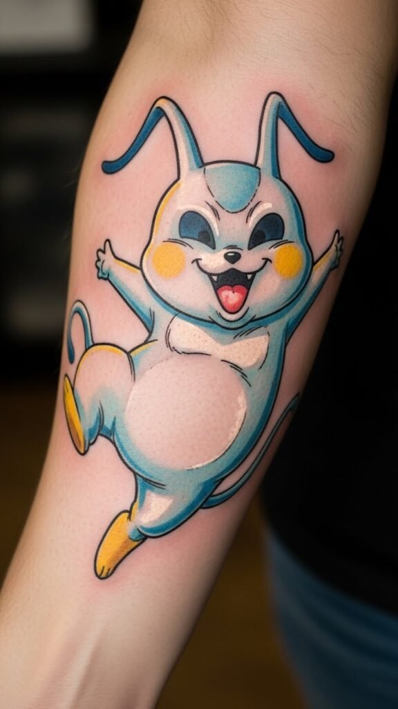 This tattoo captures the essence of joy and playfulness intrinsic to Dragon Ball Z, representing Goku’s adventurous spirit and resilience.
