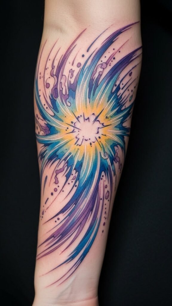 The vibrant colors and dynamic forms evoke a sense of excitement, making it not just a tattoo, but a celebration of individuality and imagination.