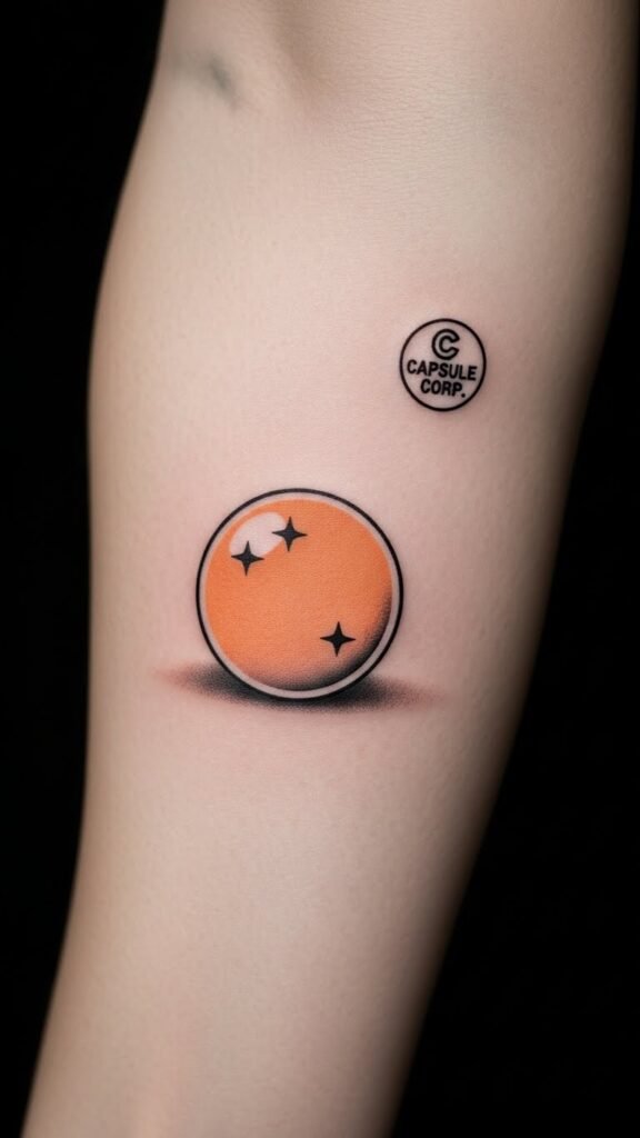 This minimalist tattoo symbolizes innovation and a passion for adventure, perfectly capturing the essence of the beloved Dragon Ball series.