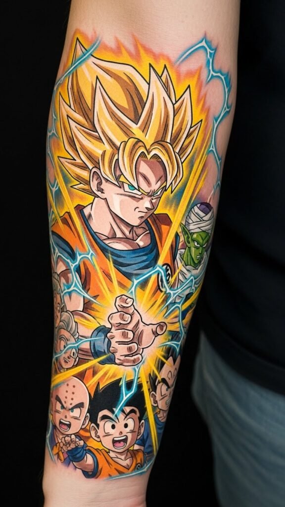 Positioned on the forearm, it serves as a reminder of the joy and energy found within the Dragon Ball Z universe. The visible placement allows for easy admiration and sparks conversations about resilience, creativity, and the importance of embracing one’s inner spirit.