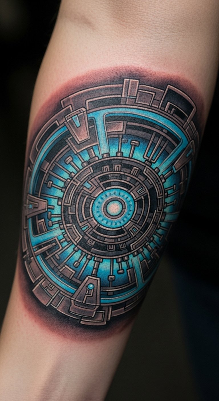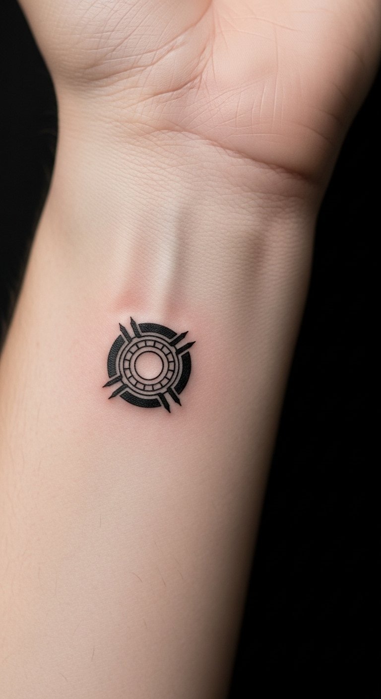 The forearm placement ensures visibility, allowing the individual to draw inspiration from Tony Stark’s perseverance and ingenuity.