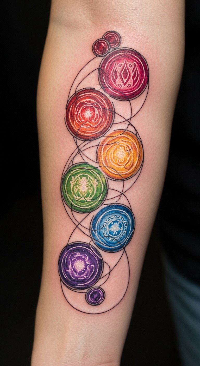 This tattoo design symbolizes the transformative power of the Infinity Stones in Tony Stark’s life, reflecting his growth and resilience.