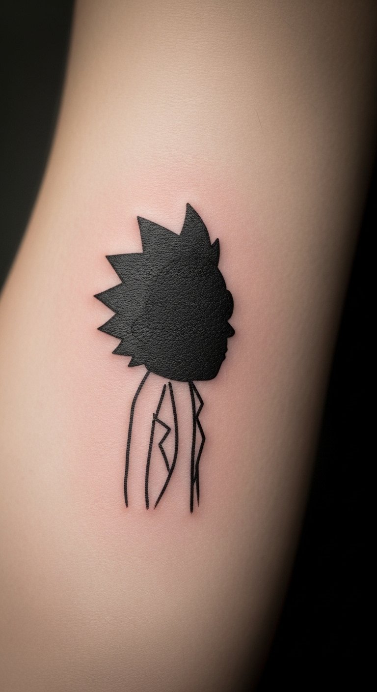 This tattoo symbolizes the unpredictability and genius of Rick, making it a bold statement for fans.